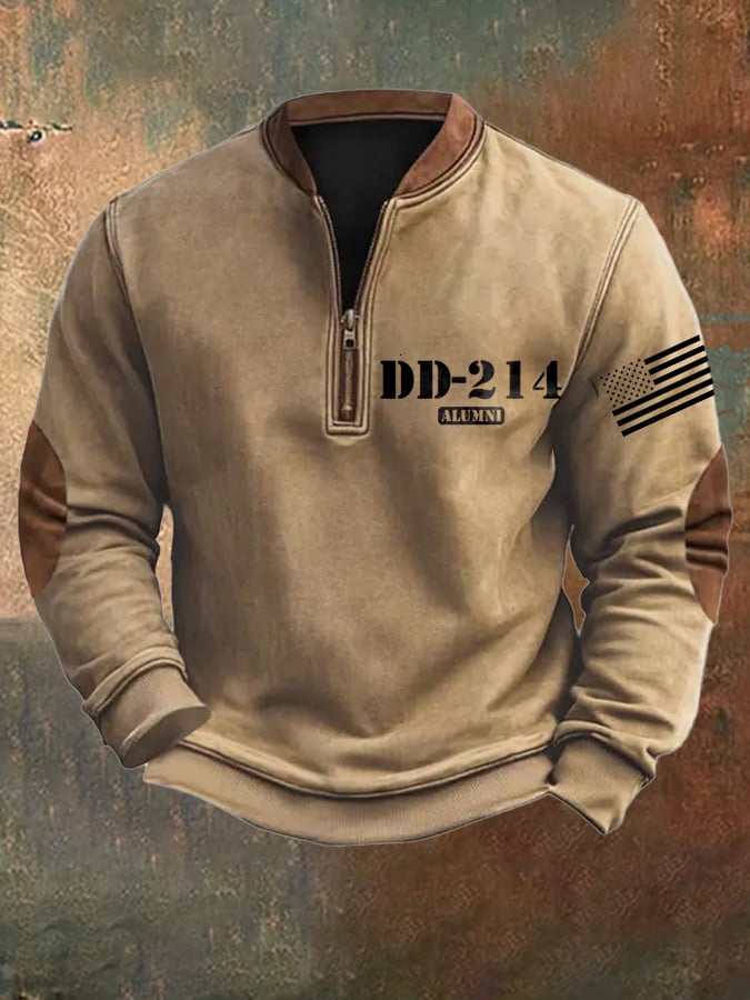 Men's Retro DD-214 Alumni Veteran USA Flag Camouflage Print Casual Hoodie