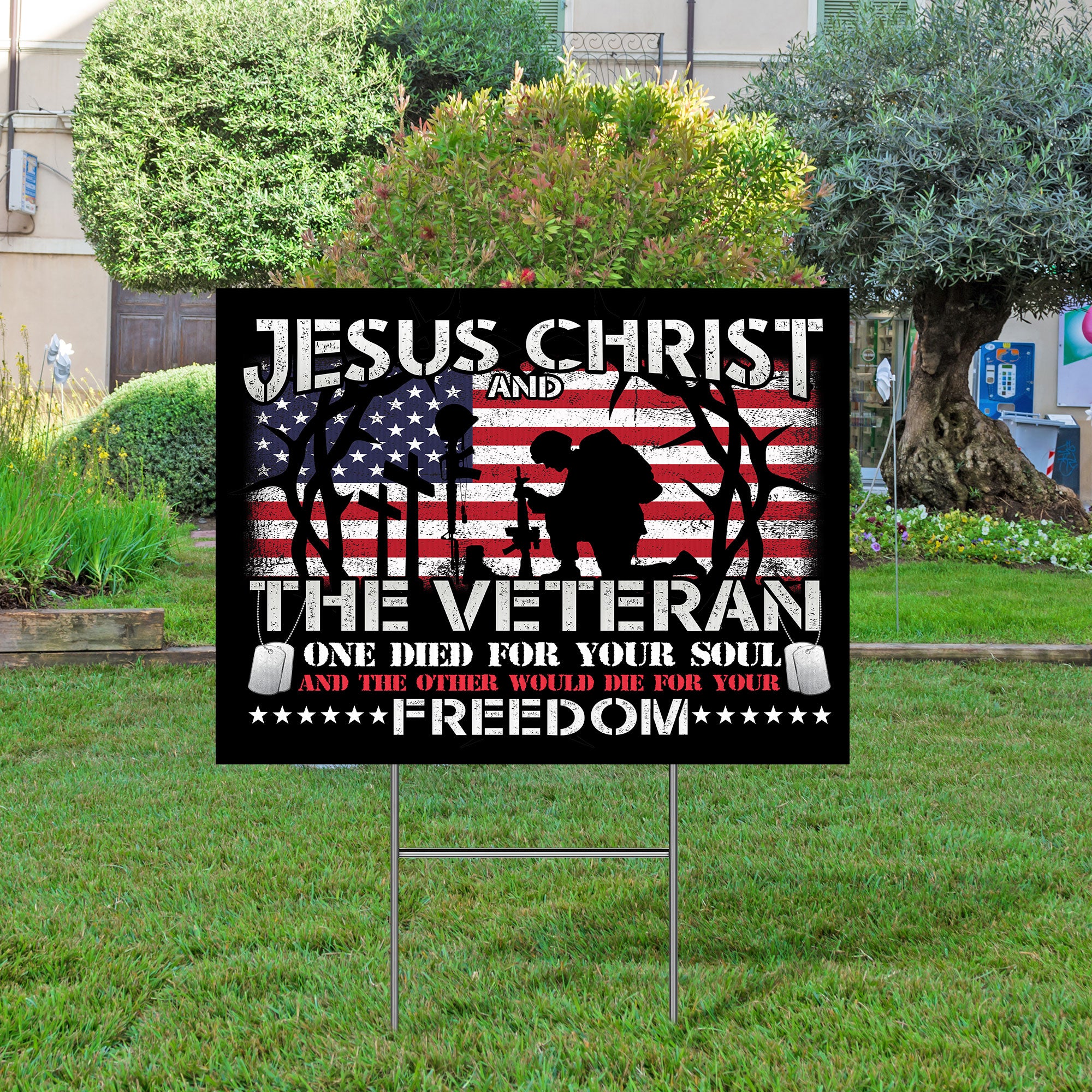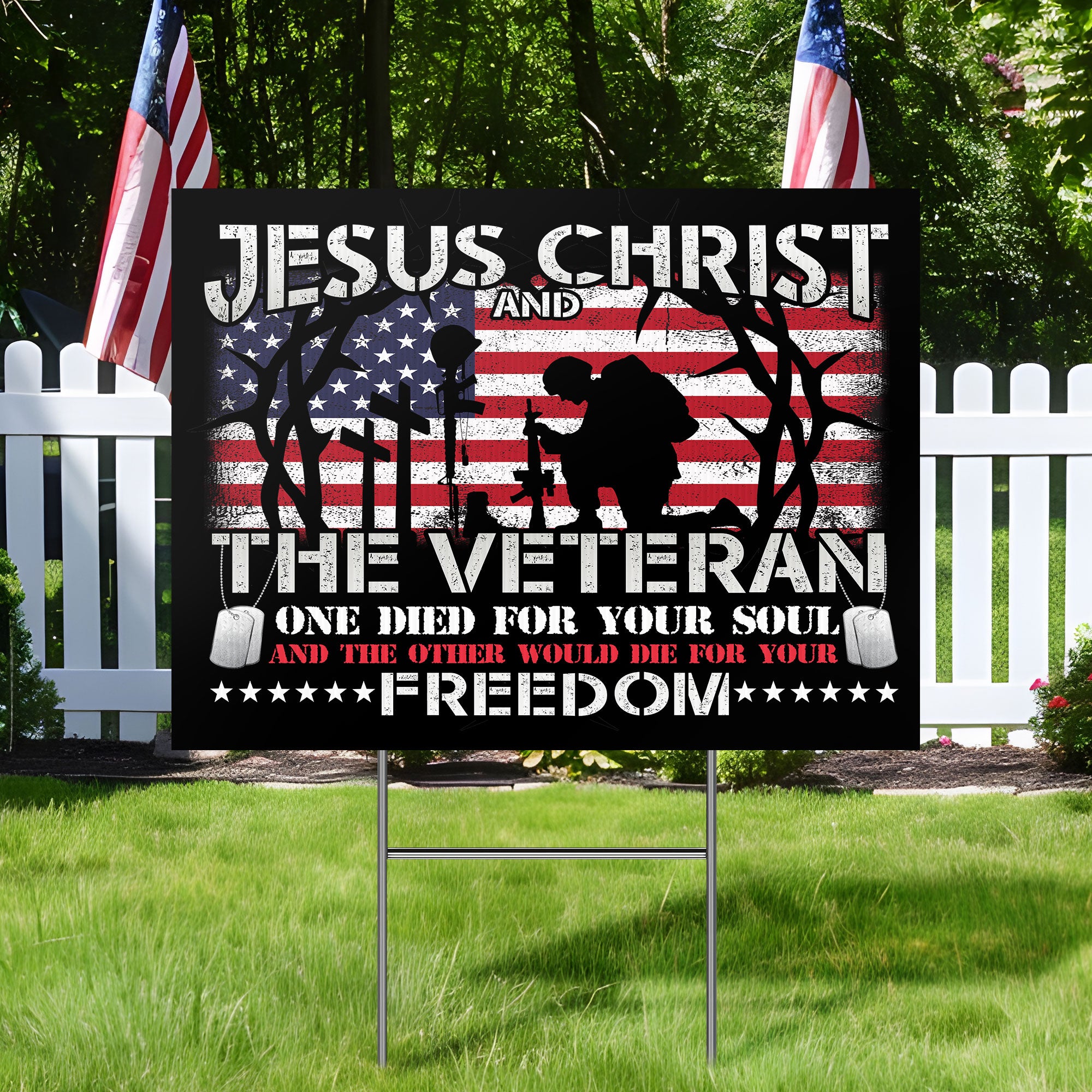 Veterans Day, Jesus Christ And The Veteran, Flag American Soldier Yard Sign