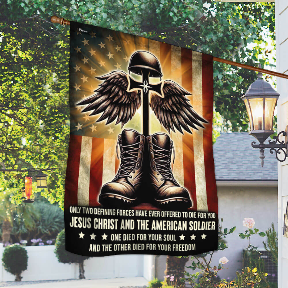 Christ and the American Veteran Flag, Only Two Defining Forces Have Ever Offered To Die For You Decor