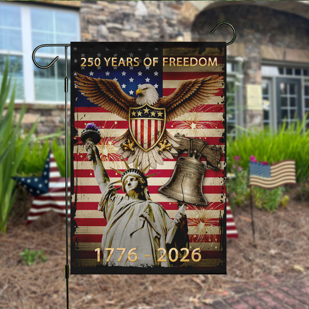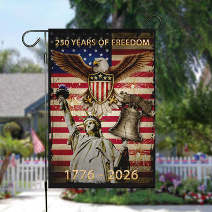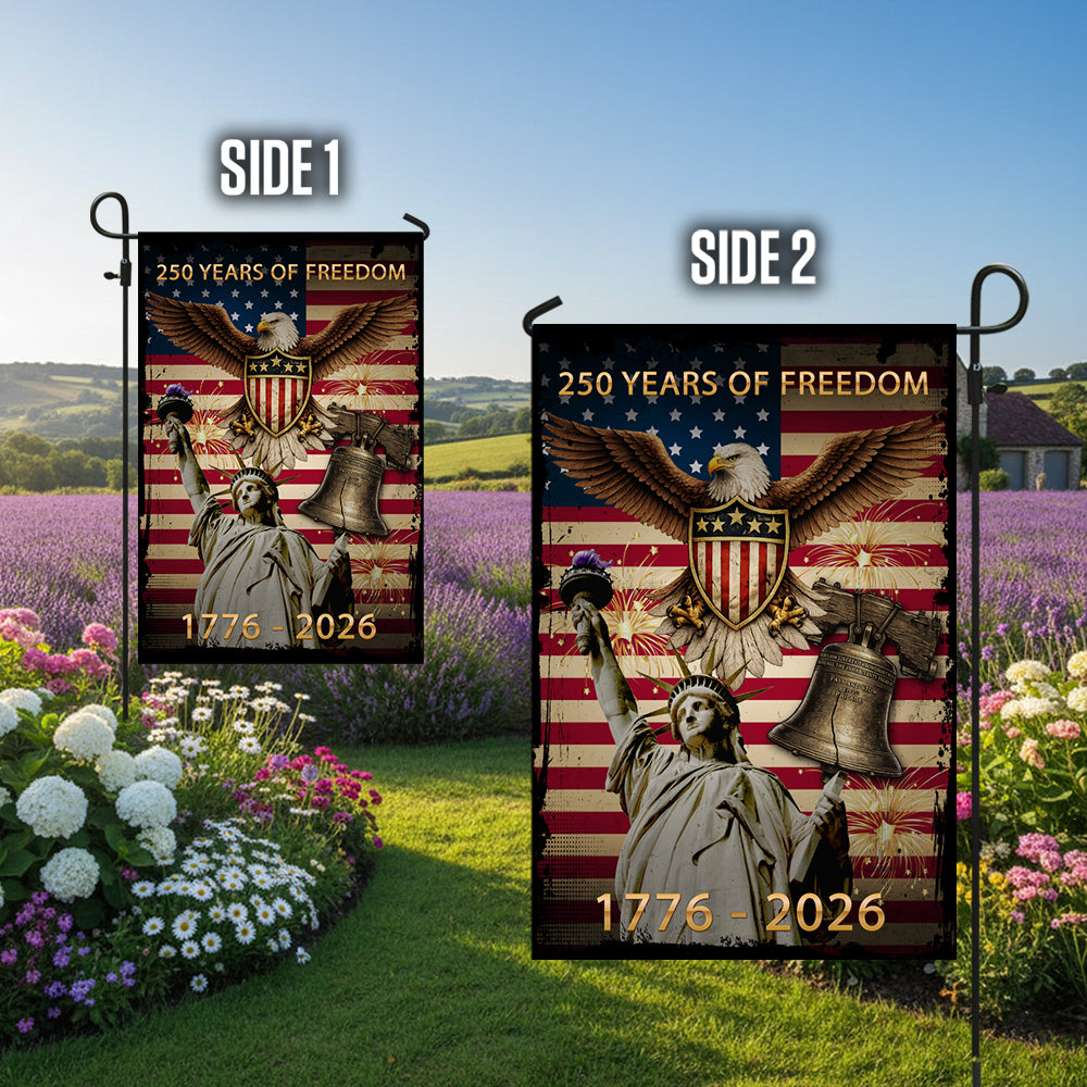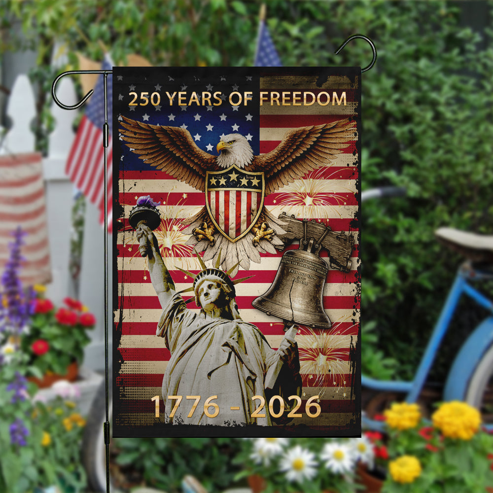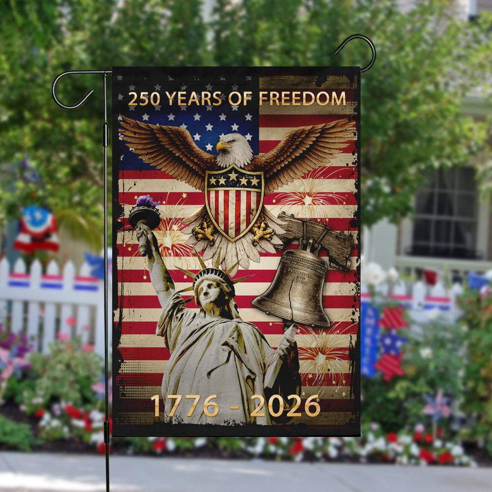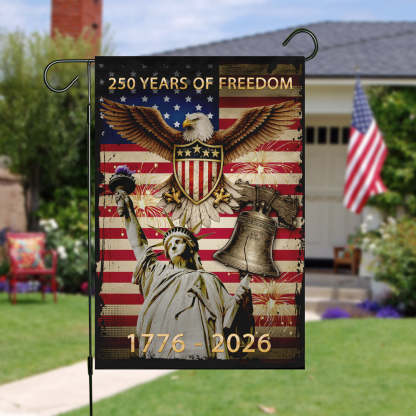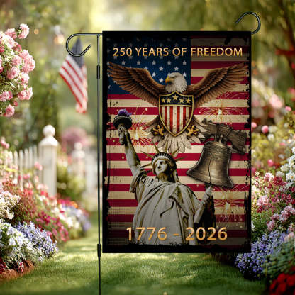 Honor the legacy of freedom and showcase your devotion to our great nation. Order your commemorative 250 Years of Freedom garden flag today and let your patriotism shine!
