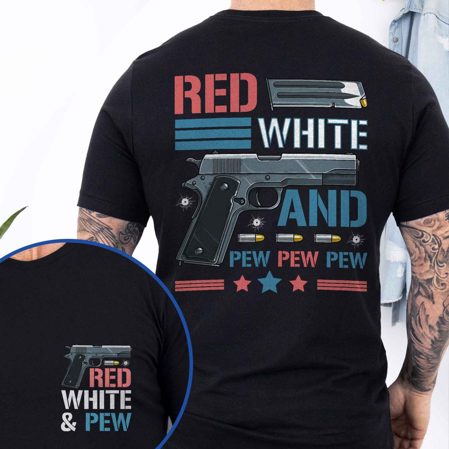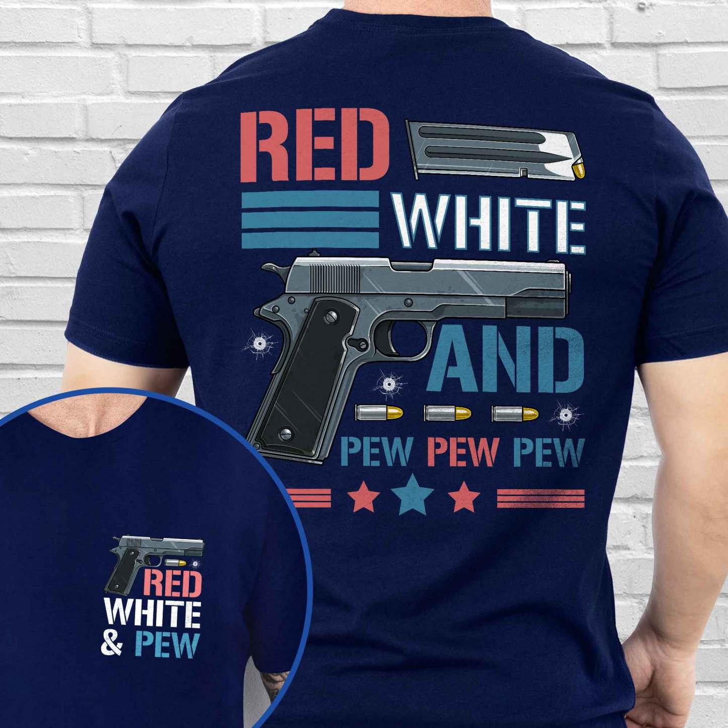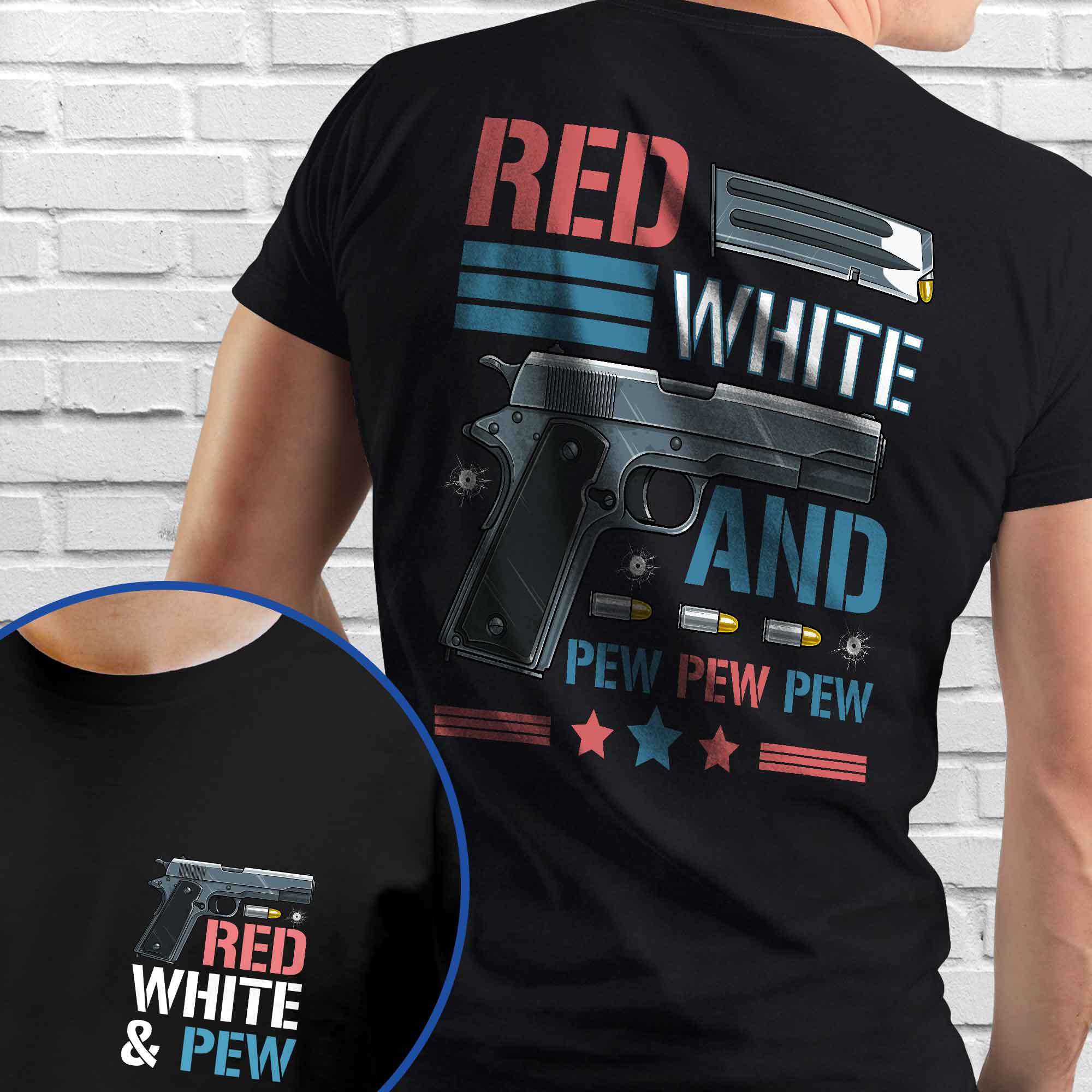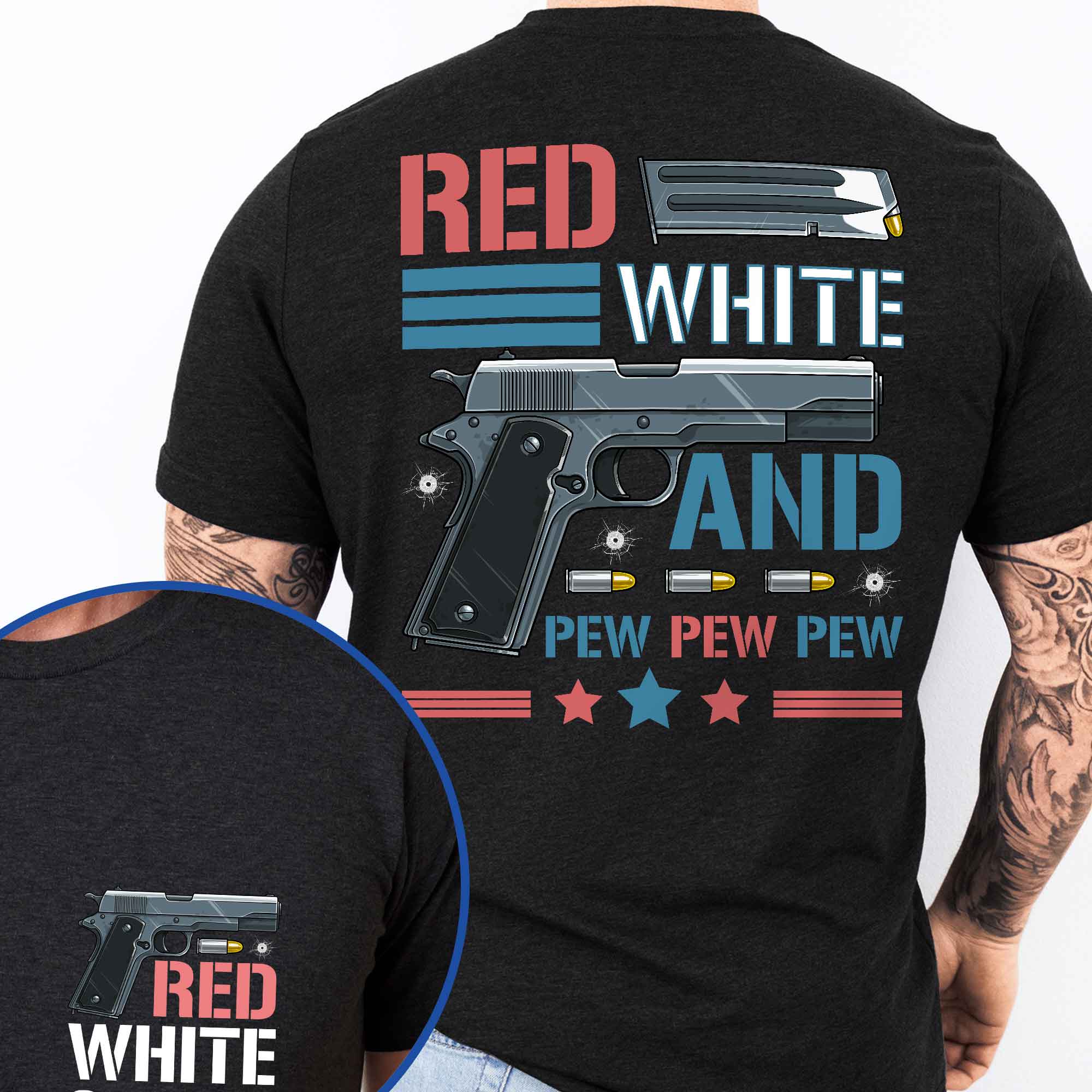4th of july, Red White & Pew 2nd Amendment, Patriotic American Gun T-Shirt