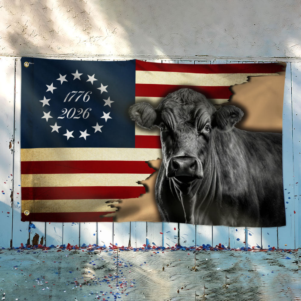 Black Angus Cattle Flag, 1776 2026 Proud Cow Farmer Farm Life Grommet Flag