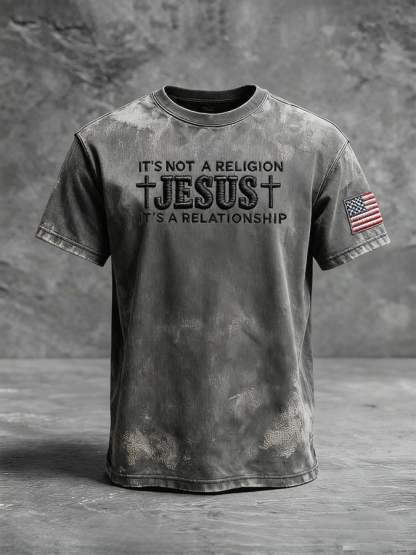 Men's Casual Faith Print Short-sleeved T-shirt