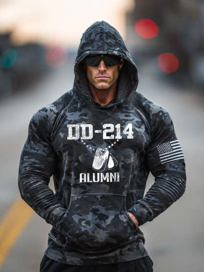 Men's Retro DD-214 Alumni Veteran USA Flag Camouflage Print Casual Hoodie