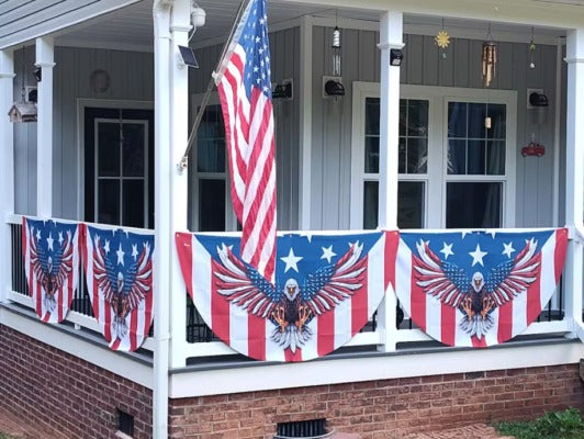 Picture it: your backyard barbecue, front porch oasis, or cozy living room transformed into a hub of color and charm with just a flick of the wrist. Our Eagle Bunting Flag is the ultimate home decor accessory, offering endless possibilities for expressing individuality and making every moment memorable.